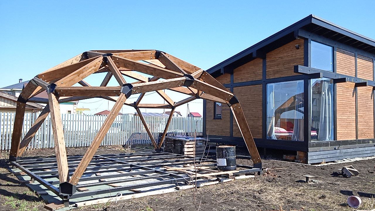 Недавно мы устроили стрим про проектирование, сборку и монтаж беседки. Той самой, которую мы построили рядом с домом Ильи. Получилось интересно как для проектировщиков так и для монтажников. Для тех кто не хочет смотреть в тексте ниже вся суть. Сегодня мы хотим рассказать о том, как мы построили купольную беседку. Основной причиной постройки такой беседки был прежде всего интерес построить её самому. Второй причиной была цена, 600 000 рублей за беседку без крыши (только узлы+ дерево), казалось э
