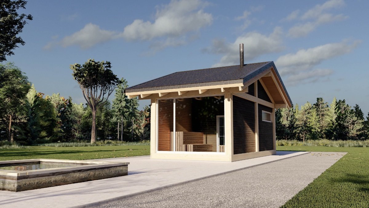 Стильная. Фахверковая. Недорогая. Баня на 22 м² Особенности — Объём клеёного бруса — 3,2  м3 — Стойки 240*240 мм, обвязка 240*80 мм, стропила 200*80 мм — Площадь застройки — 28 м² — Наружный размер — 7352*3796мм, внутренний 6872*3316 мм — Возможность утепления по верхней обвязке, при этом от чистого пола до потолка не менее 2408 мм — Высота снаружи 4336 мм — 5196 мм — самая длинная деталь, поместится в ГАЗель с кузовом 5 метров по диагонали Автор проекта архитектор-конструктор Андрей Светлов и